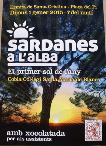 El proper Dijous 1 de gener a les 7:00 del matí, ballada de sardanes amb el primer sol de l'any a la plaça del Pi de Santa Cristina.